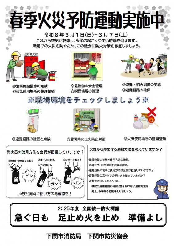 令和8年3月1日(日)から7日(土)までの一週間、春の火災予防運動が実施されます。