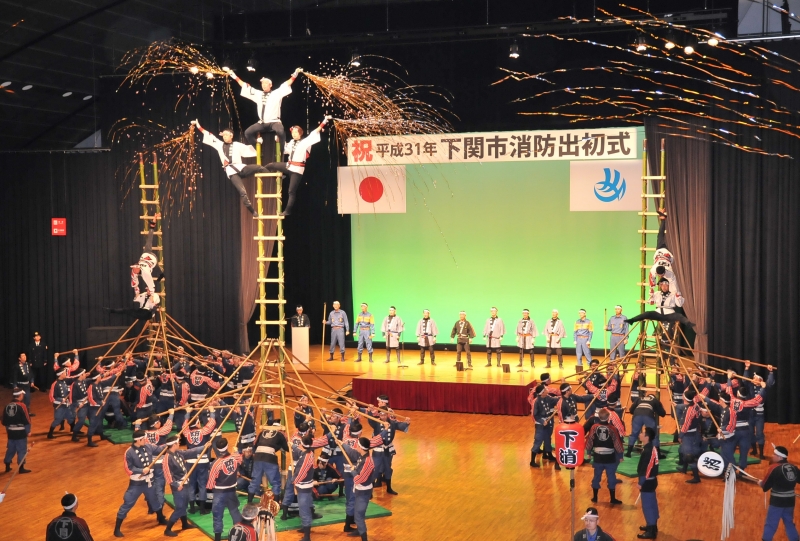 日時:令和2年1月11日(土) 9:30~12:00 場所:オーヴィジョン海峡通り・海峡メッセ下関(豊前田町三丁目) 内容:【分列行進】9:30~10:00 オーヴィジョン海峡通り 【式典・海峡まとい太鼓・はしご乗り演技】10:10~12:00 海峡メッセ下関イベントホール