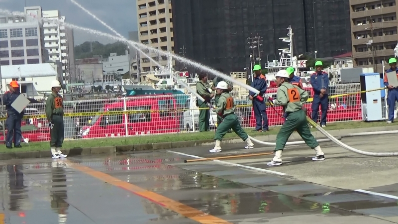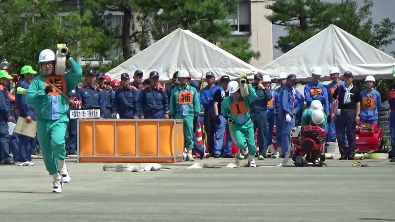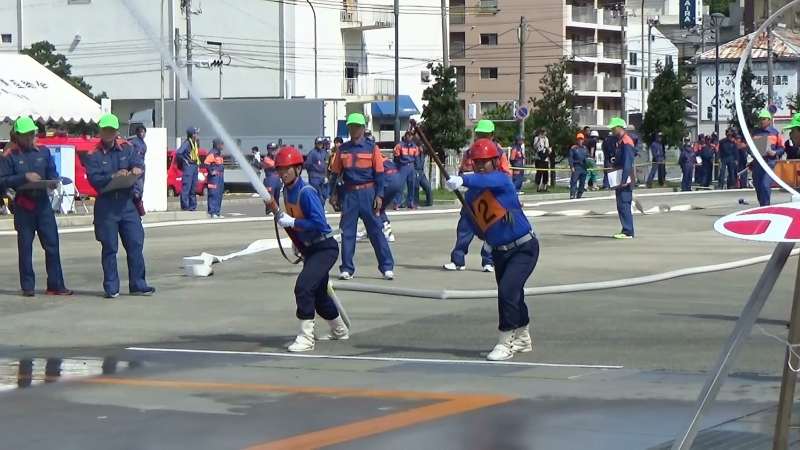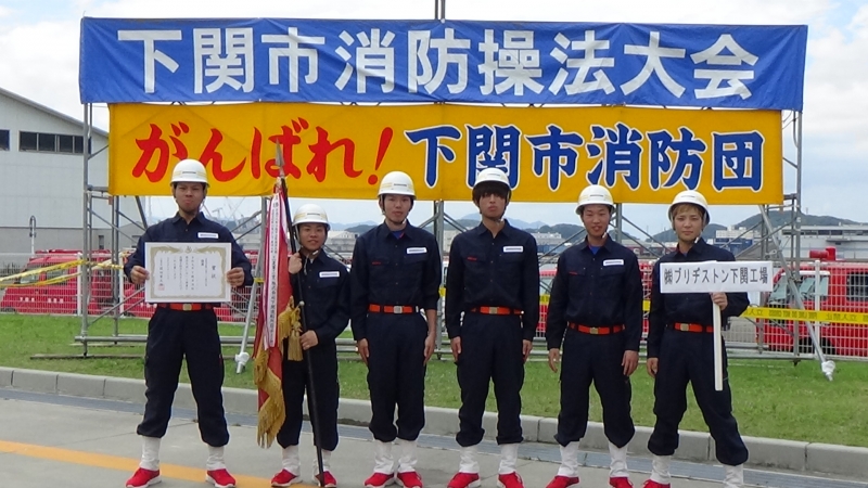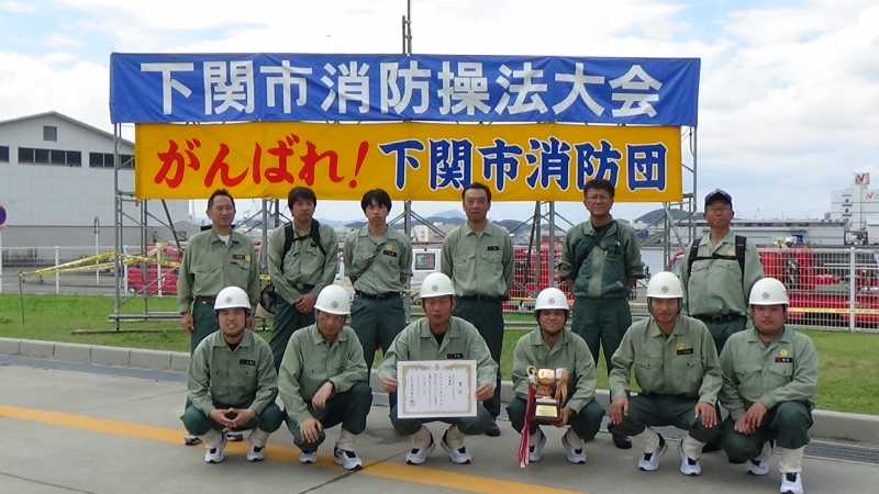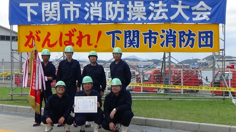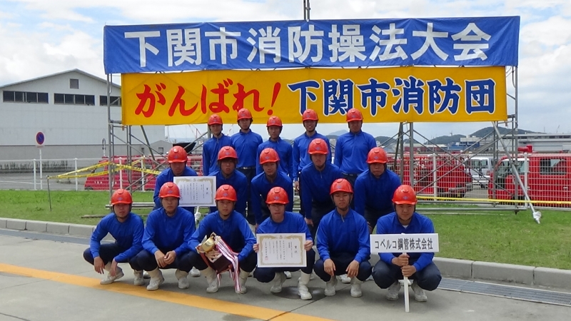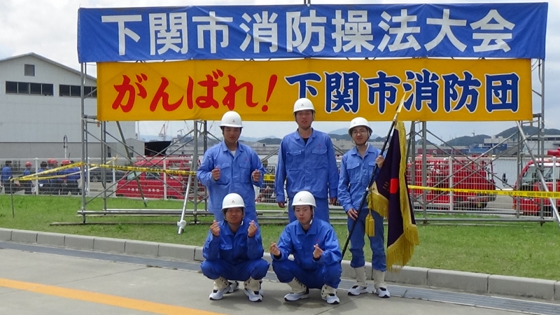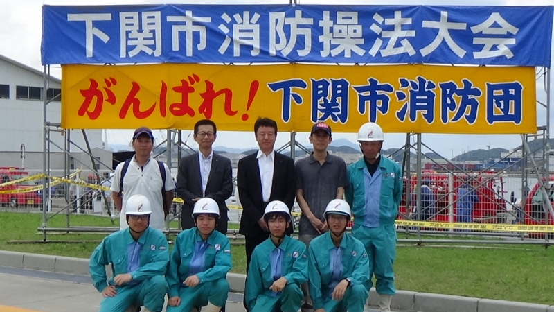 令和元年7月27日(土)に下関市消防局敷地内で下関市消防操法大会が開催され、事業所の自衛消防隊や下関市内の消防団員が操法技術を競いました。