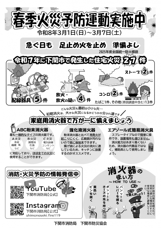 令和8年3月1日(日)から7日(土)までの一週間、春の火災予防運動が実施されます。